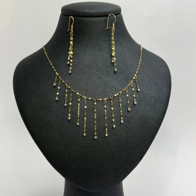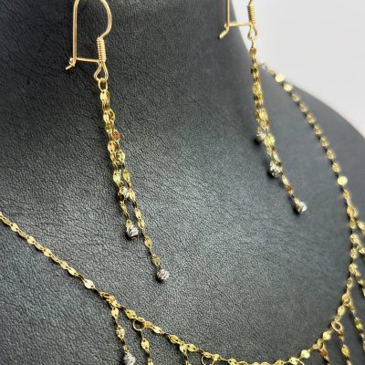سرویس شرابهای با طراحی ظریف و آویزان خود، جلوهای چشمگیر و زنانه به استایل شما میبخشد. این سرویس شامل گردنبند،