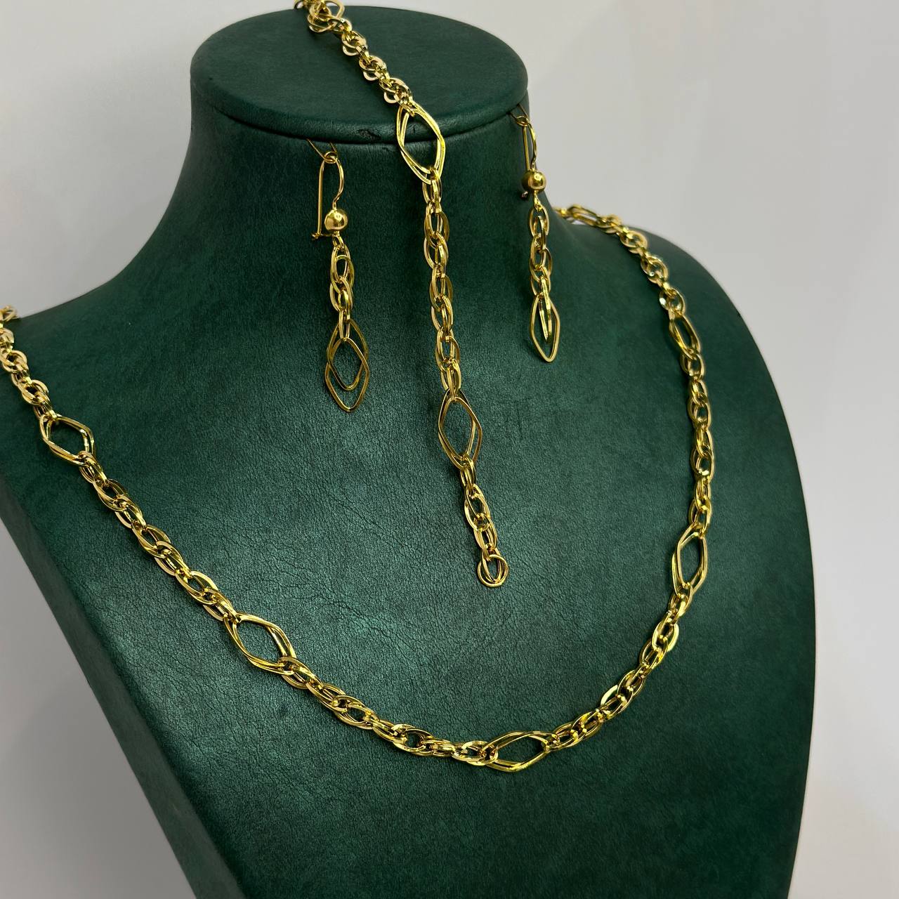 سرویس اسپادانا با طراحی مدرن و هماهنگ، جلوهای خاص و چشمگیر به استایل شما میبخشد. این سرویس شامل گردنبند و گوشواره ست است و با طلای ۱۸ عیار و جزئیات دقیق، ترکیبی از شیکپوشی و ظرافت را ارائه میدهد.