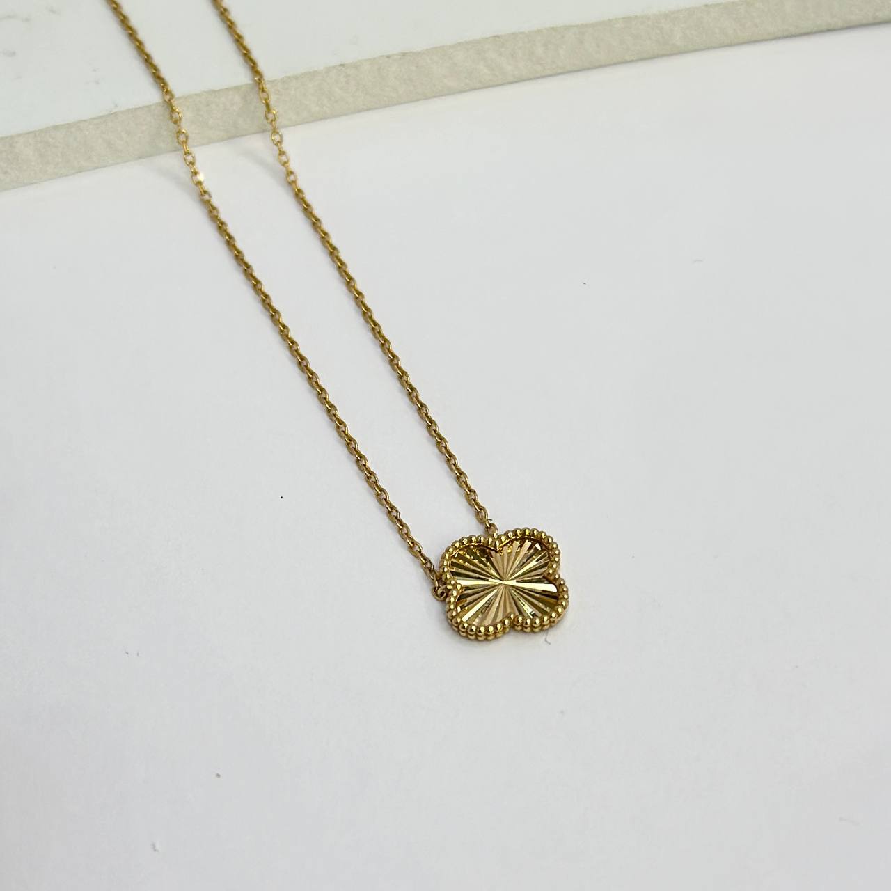 گردنبند ونکلیف با طراحی الهامگرفته از برند لوکس Van Cleef & Arpels، نمادی از ظرافت، زیبایی و درخشش جاودانه است. گلهای کلاسیک این مدل با ترکیب طلای ۱۸ عیار، جلوهای خاص و زنانه به استایل شما میبخشند.
