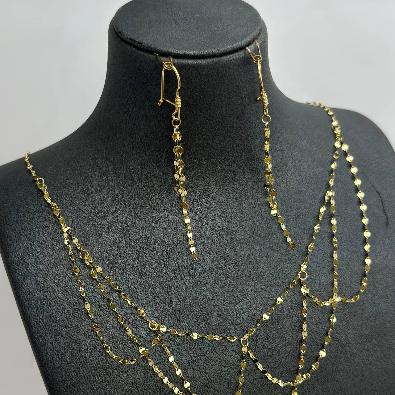 سرویس شرابهای با طراحی ظریف و آویزان خود، جلوهای چشمگیر و زنانه به استایل شما میبخشد. این سرویس شامل گردنبند، گوشواره و دستبند با آویزهای لطیف و درخشان است که در هر حرکت، نوری دلفریب منعکس میکنند.