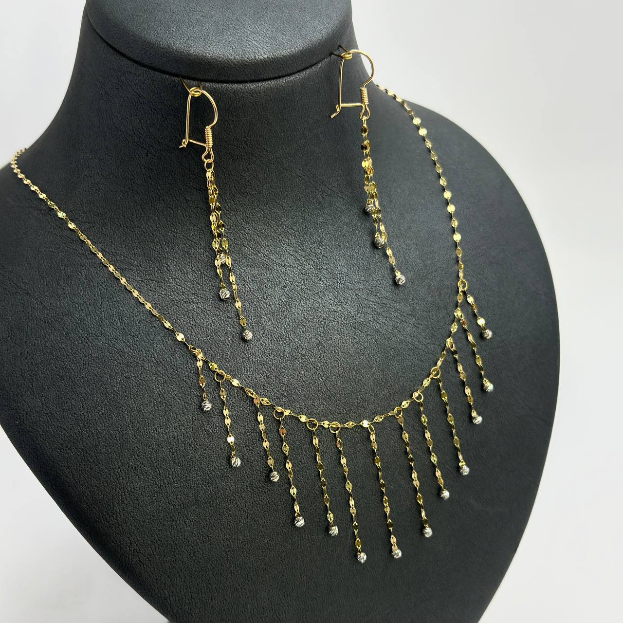 سرویس شرابهای با طراحی خاص و آویزان، یکی از شیکترین و چشمگیرترین مدلهای طلاست که جذابیت و حرکت زیبایی به استایل شما میبخشد. این سرویس با ساخت ظریف و طلای ۱۸ عیار، درخشش را به زیباترین شکل ممکن نمایش میدهد و انتخابی عالی برای مجالس و استایلهای خاص است.
