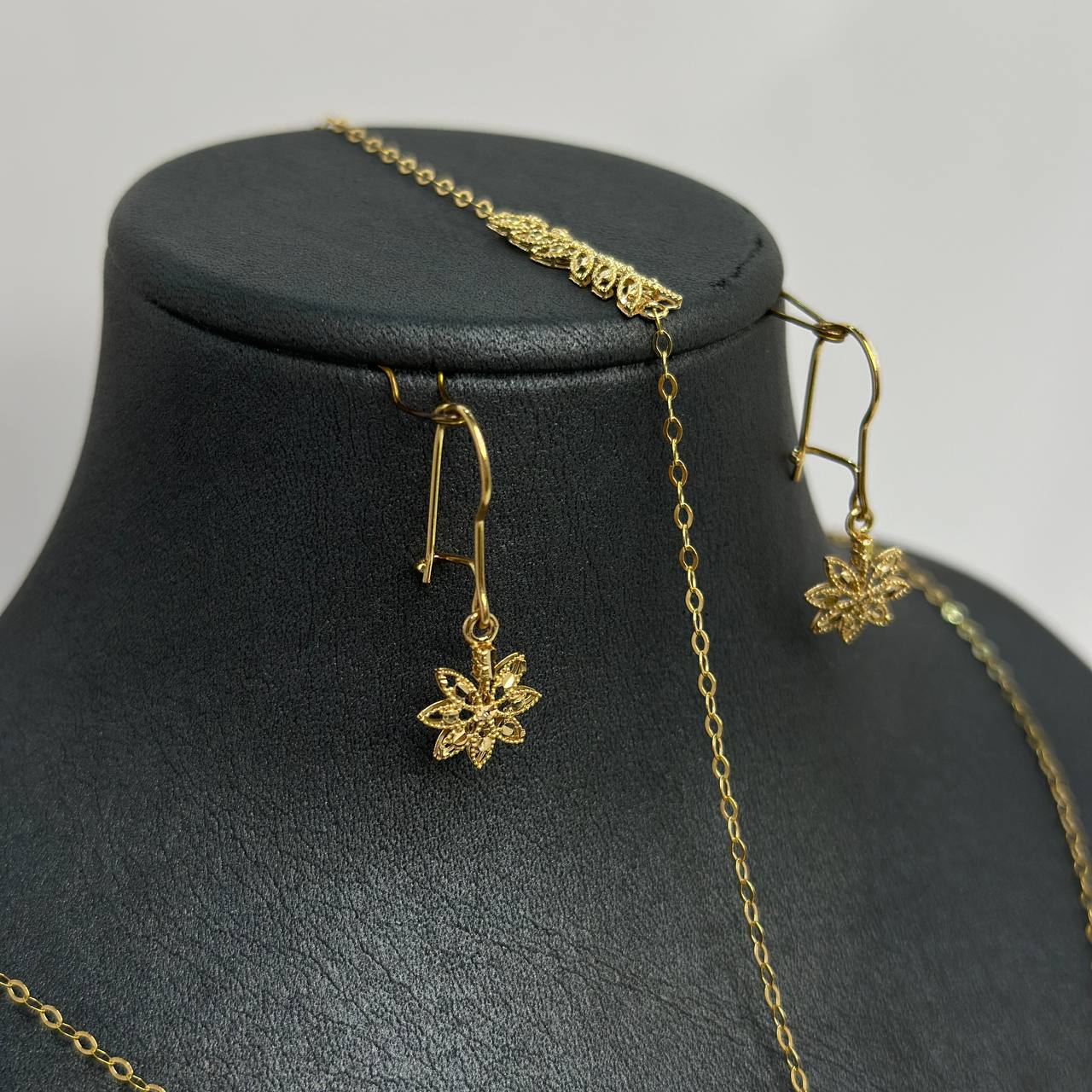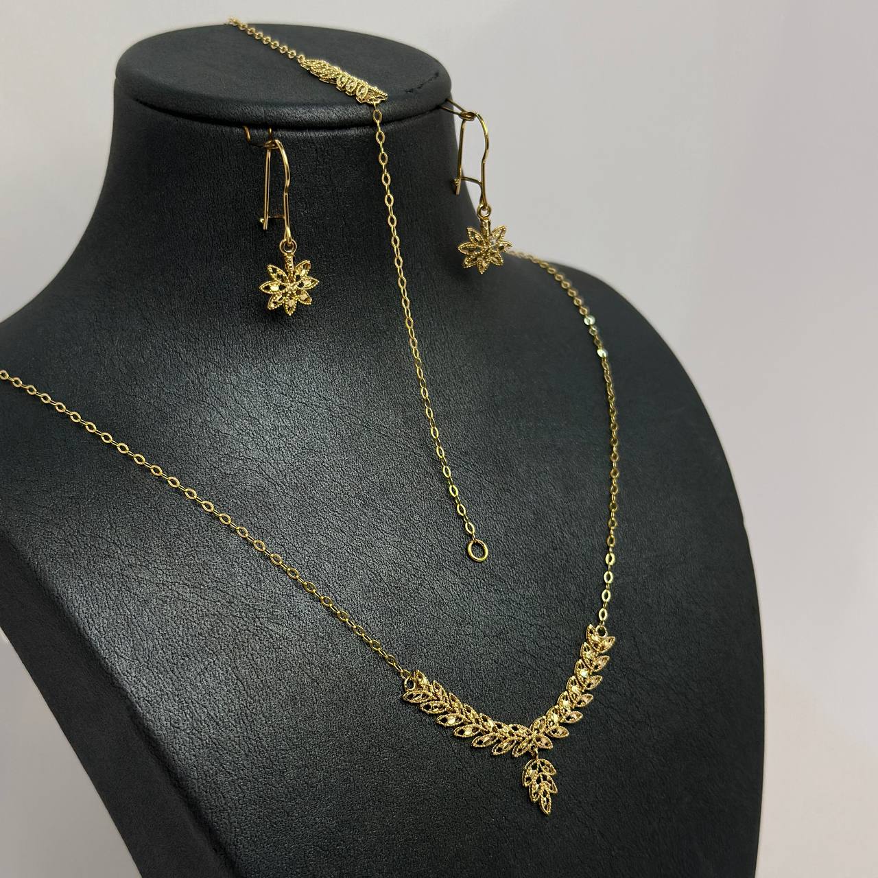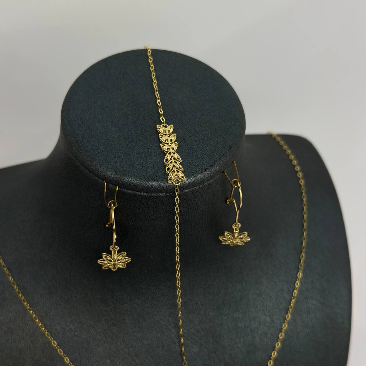سرویس یسنا با طراحی ظریف و مدرن، جلوهای شیک و زنانه به استایل شما میبخشد. این سرویس شامل گردنبند و گوشواره هماهنگ است و با درخشش طلای ۱۸ عیار، زیبایی و جذابیت خاصی به استایل شما اضافه میکند.