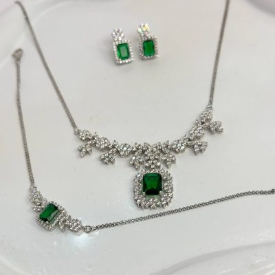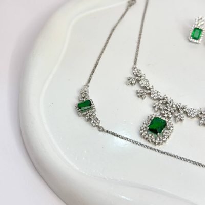 سرویس نگین سبز با درخشش خیره‌کننده و رنگ خاص خود، الهام‌گرفته از زیبایی طبیعت است. نگین‌های سبز درخشان این سرویس،